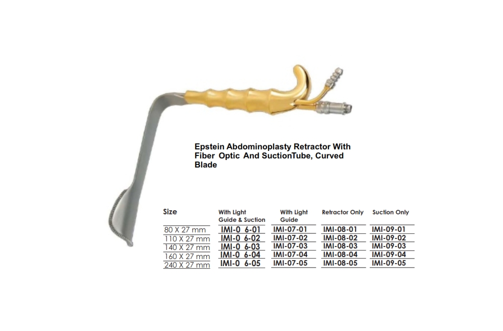 / Epstein Abdominoplasty Retractor With Fiber Optic And SuctionTube, Curved Blade