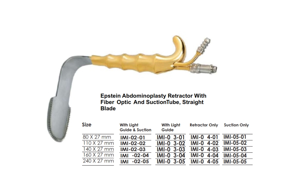 / Epstein Abdominoplasty Retractor With Fiber Optic And SuctionTube, Straight Blade